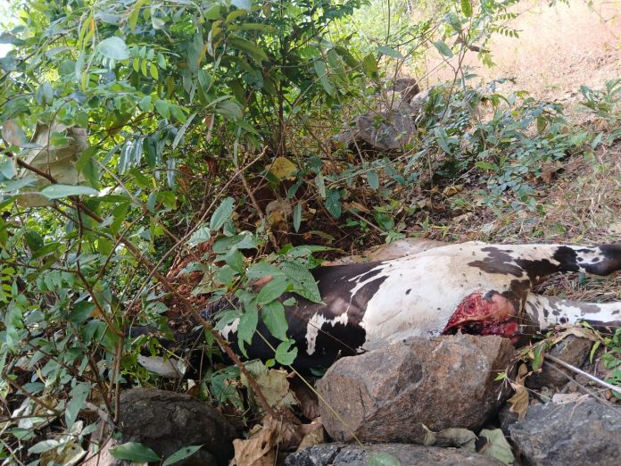 शेतकरी मोतीराम गुरखे यांनी आपली जनावरे जंगलात चारण्यासाठी सोडली होती. त्यांची इतर सर्व जनावरे सायंकाळी घरी आली. परंतु एक गाय मात्र आली नाही. गुरखे यांनी सर्वत्र शोधाशोध केली. घरापासुन अर्धा किलोमीटर अंतरावर ती गाय त्यांना मृत अवस्थेत आढळून आली.