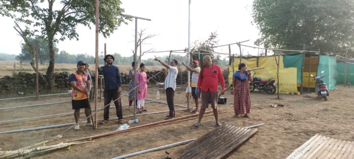 आचरा–अर्जुन बापर्डेकर :गावपळणीचे दिवस जवळ आल्याने गावच्या वेशीबाहेर वस्ती साठी निवारा उभारण्यासाठी सध्या ग्रामस्थ गुंतले आहेत.