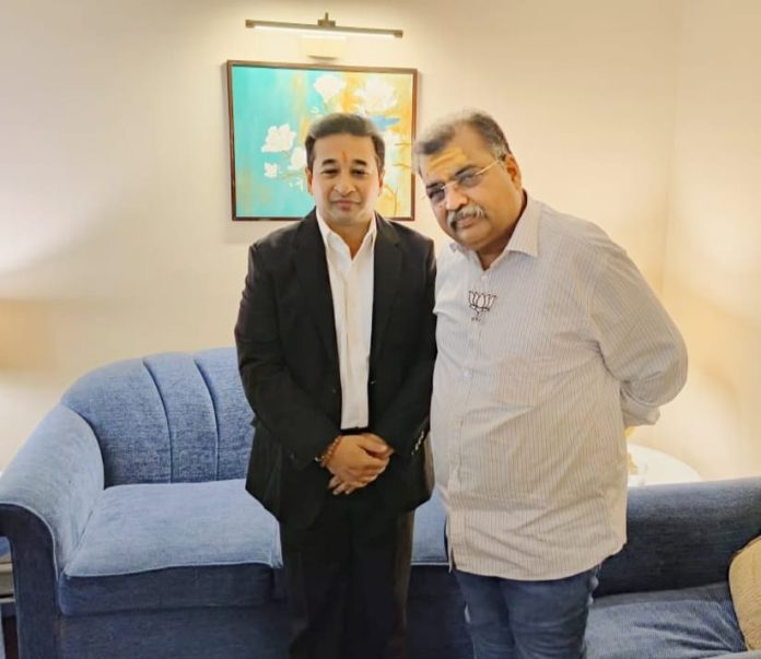 सिंधुदुर्ग मंत्री नितेश राणे यांनी माजी मंत्री रवी चव्हाण यांची घेतली सदिच्छा भेट December 16, 2024 Share WhatsAppFacebookTwitterTelegram नागपूर :महाराष्ट्र राज्याचे कॅबिनेट मंत्री नितेश राणे यांनी माजी बांधकाम मंत्री रवींद्र चव्हाण यांची सदिच्छा भेट घेतली. नितेश राणे यांनी कॅबिनेट मंत्रीपदाची शपथ घेतल्यानंतर नागपूर येथे ही सदिच्छा भेट घेतली.