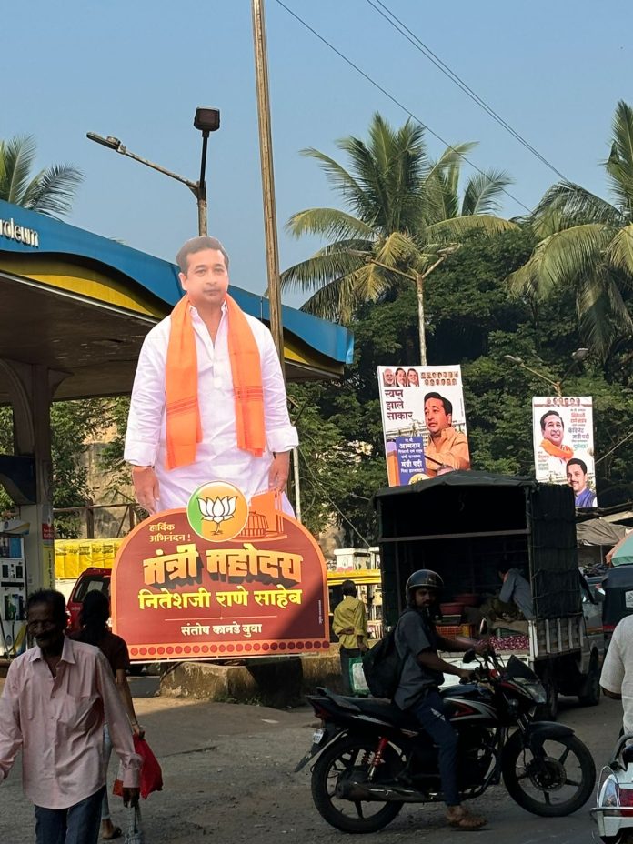 “मंत्री महोदय…नितेशजी राणे साहेब’ आशयाचे कट आउट