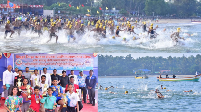 मालवण | प्रतिनिधी : महाराष्ट्र राज्य हौशी जलतरण संघटना यांच्या मान्यतेने सिंधुदुर्ग जिल्हा जलतरण संघटना व मालवण नगरपरिषद यांच्या संयुक्त विद्यमाने मालवण चिवला बीच येथे आयोजित 14 व्या राज्यस्तरीय सागरी जलतरण स्पर्धेच्या पहिल्या दिवशी राज्यभरातील स्पर्धक मोठया संख्येने उत्स्फूर्तपणे सहभागी झाले. स्पर्धेतील सर्वाधिक मोठया 10 किलोमीटर स्पर्धेत पुरुष गटात ठाणे येथील अश्विन कुमार, तर महिलांच्या गटात बेळगाव येथील डिंपल गोवडा यांनी वेगवान जलतरणपटू चा बहुमान पटकवाला.