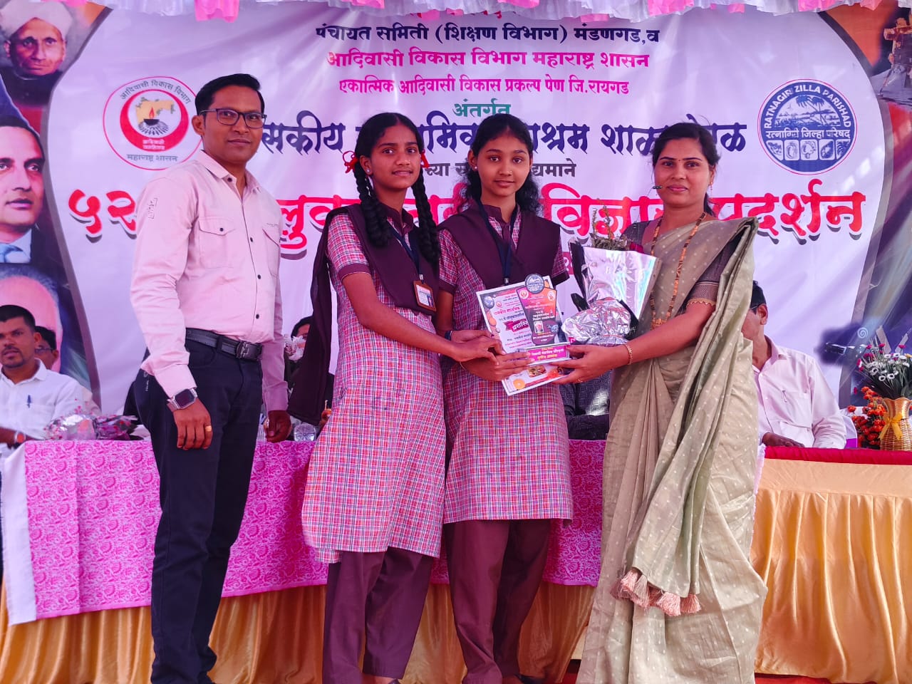 प्रतिनिधी – मंडणगड : तालुका विकास मंडळ F-1428 मुंबई संचालित पणदेरी – पेवे पंचक्रोशी हायस्कूल पणदेरी या विद्यालयाने शासकीय आश्रमशाळा वेरळ येथे आयोजित 52 व्या तालुकास्तरीय विज्ञान प्रदर्शनात घवघवीत यश संपादन करून प्रशालेचे नाव उज्वल केले आहे. माध्यमिक गटात कुमारी सायली शिगवण व कुमार बबन राळे यांनी बनविलेल्या *बहुउद्देशीय खुर्ची या मॉडेल ने द्वितीय क्रमांकाचे* पारितोषिक पटकावले तर प्राथमिक गटात कुमारी आर्या सवणसकर व कुमारी श्रुति तांबे या दोघीनी बनवलेल्या *घरगुती वॉशिंग स्प्रे या मॉडेल ला तृतीय क्रमांकाचे* पारितोषिक प्राप्त झाले. दोन्हीही मॉडेल जिल्हास्तरीय विज्ञान प्रदर्शनास पात्र ठरले आहेत. या दोन्हीही मॉडेल साठी विज्ञान शिक्षक शिक्षक *श्री.इंगळे सर* यांनी मार्गदर्शन केले.