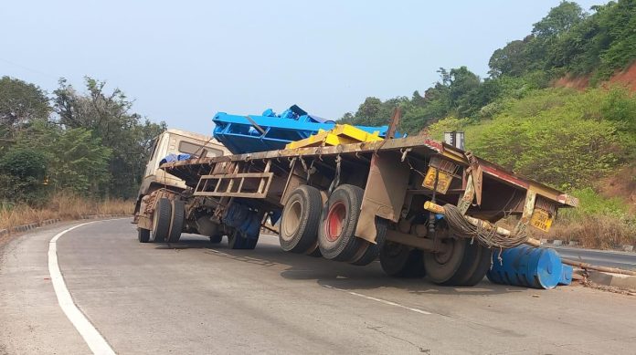 खेड(प्रतिनिधी)मुंबई – गोवा महामार्गावरील भोस्ते घाटात मंगळवारी सकाळी ८ वा च्या सुमारास गोव्याहून मुंबई च्या दिशेने जाणारा ट्रेलर वरील अवजड साहित्य रस्त्यावर कोसळून ट्रेलर कलंडला. त्यामुळे म्हामर्गावरील वाहतूक सुमारे चार तास बाधित झाली