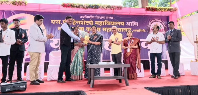 याप्रसंगी व्यासपीठावर नवनिर्माण शिक्षण संस्थेचे चेअरमन अभिजीत हेगशेट्ये, उपाध्यक्ष डॉ. अलीमिया परकार, संचालिका सौ. सीमा हेगशेट्ये, मुख्य कार्यकारी अधिकारी डॉ. मंदार गीते, महाविद्यालयाच्या प्राचार्य डॉ. आशा जगदाळे, नवनिर्माण कनिष्ठ महाविद्यालय प्रमुख प्रा. सुकुमार शिंदे, सांस्कृतिक विभाग प्रमुख प्रा. ताराचंद ढोबाळे, कनिष्ठ महाविद्यालयाची जीएस सलोनी राजीवले, वरिष्ठ महाविद्यालयाचा जीएस अमान बारगीर आदी उपस्थित होते. मान्यवरांच्या हस्ते दीपप्रज्वलनाने कार्यक्रमाची सुरुवात झाली. यावेळी महाविद्यालयातील सर्व प्राध्यापक, शिक्षकेतर कर्मचारी आणि विद्यार्थी मोठ्या संख्येने उपस्थित होते. या कार्यक्रमादरम्यान महाविद्यालयात घेण्यात आलेल्या क्रीडा, सांस्कृतिक क्षेत्रातील विविध प्रकारात प्रथम तीन क्रमांक विजेत्या विद्यार्थ्यांना पारितोषिके देऊन गौरविण्यात आले. कार्यक्रमाचे प्रास्ताविक महाविद्यालयाच्या प्राचार्या डॉ. जगदाळे यांनी केले. सूत्रसंचालन अद्वैत शेट्ये या विद्यार्थ्याने केले. आभार जीएस अमान बारगीर याने मानले.