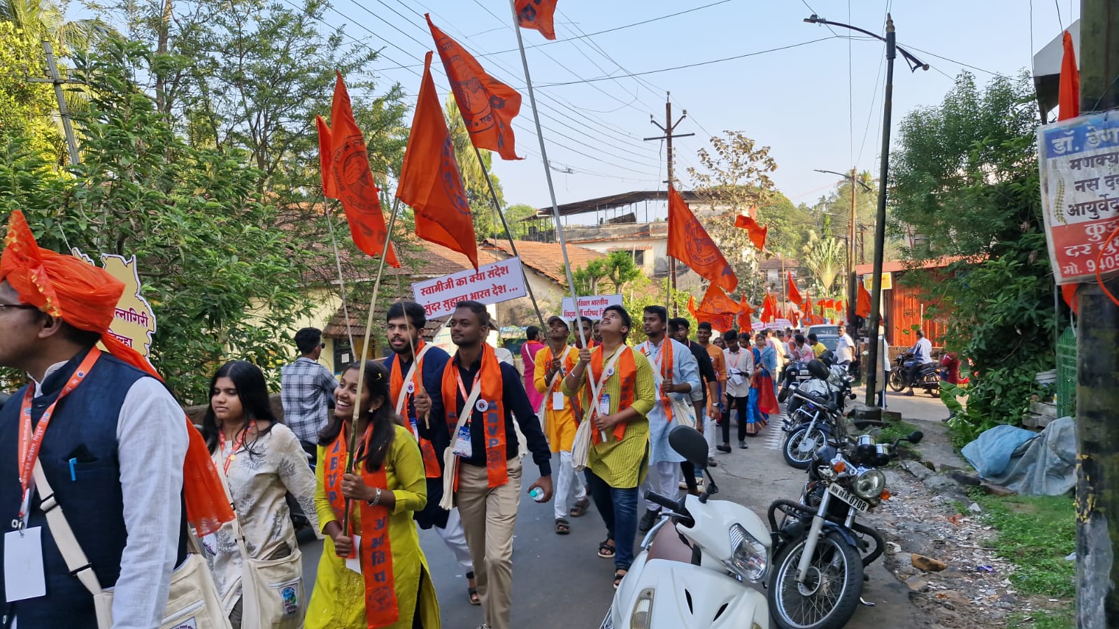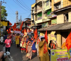शहरातून ही भव्य शोभायात्रा काढण्यात आली. राजवाडा येथून या रॅलीला प्रारंभ झाला. कोकण प्रांतातील जिल्ह्यांसह गोवा येथील विद्यार्थ्यी यात सहभागी झाले होते. ढोल पथकांच्या जयघोषासह जोरदार घोषणांनी परिसर दणाणून गेला होता. या शोभायात्रेत युवराज लखमराजे भोंसले, स्वागत समिती सचिव अतुल काळसेकर, प्रांत अध्यक्ष श्रीकांत दुदगीकर, प्रांत मंत्री राहुल रजोरीआ, सावंतवाडी शहराध्यक्ष डॉ. साईनाथ सितावार, शहरमंत्री स्नेहा धोटे, कोकण विभाग संघटन मंत्री शैलेंद्र दळवी, प्रदेश मंत्री संकल्प फळदेसाई,व्यवस्था प्रमुख चिन्मयी प्रभू खानोलकर, अवधूत देवधर, सुधीर आडीवरेकर, राजू राऊळ, बंड्या सावंत, डॉ. राजशेखर कार्लेकर, अँड. संजू शिरोडकर, दिलीप भालेकर आदींसह शेकडो जण शोभायात्रेत सहभागी झाले होते. यानंतर गांधी चौक येथे जाहीर सभा पार पडली.