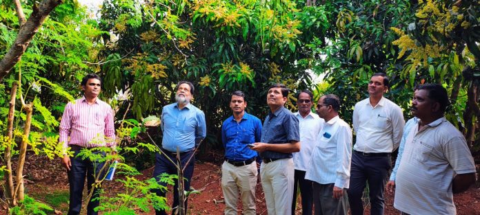 यावेळी त्यांनी ‘वसंतसम्राट ‘या नवीन शोध लावलेल्या वाणाची आणि एस. के. यू. या नवीन शेवग्याच्या वाणाची आणि इतर झाडांची पाहणी केली. तसेच बागेचे व्यवस्थापन जाणून घेतले . तसेच फोंडेकर यांच्या कडून हापूस आंब्याच्या पिकाबद्दल माहिती घेतली. यावर्षीच्या हापूस आंब्याच्या पेटीची नोंद वर्ल्ड रेकॉर्ड मध्ये झाल्याबद्दल अधिकाऱ्यांनी श्री फोंडेकर यांना पुष्पगुछ देऊन पुढील वाटचालीस शुभेच्छा दिल्या. यावेळी त्यांच्याबरोबर मालवण ता. कृषी अधिकारी श्री. एकनाथ गुरव, मंडळ कृषी अधिकारी श्री परब, कृषी पर्यवेक्षक धनंजय गावडे, कृषी सहाय्यक किशोर कदम उपस्थित होते.