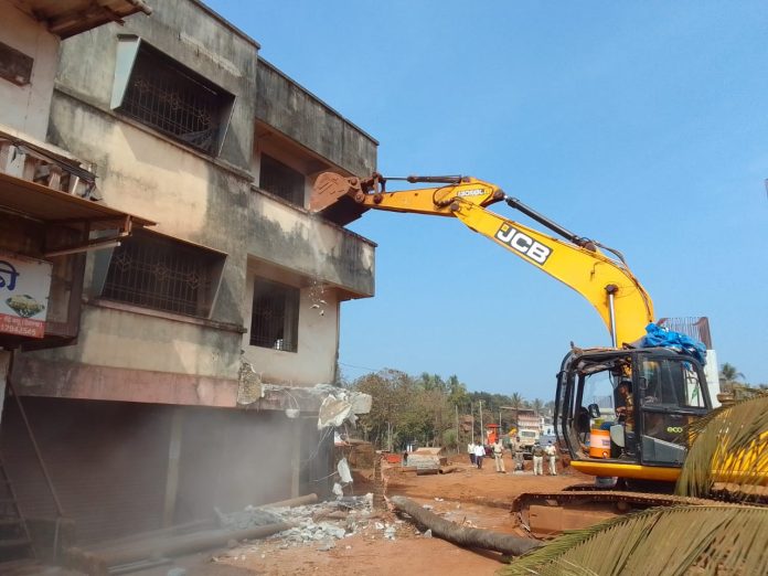 संतोष कोत्रे l मुंबई गोवा महामार्गाच्या चौपदरीकरण चा कामात अडथळा ठरणारी बांधकामे पाडण्यास सुरुवात
