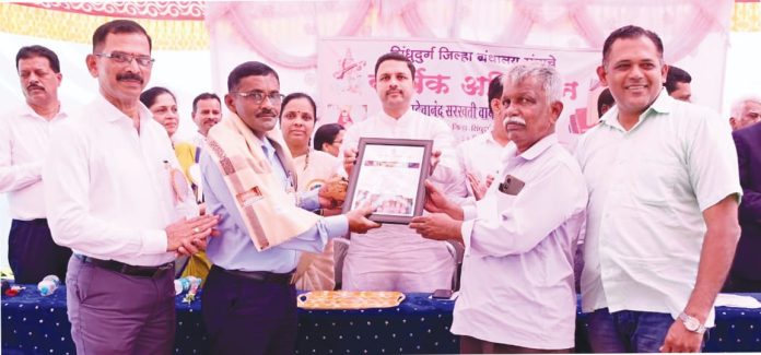 वेंगुर्ले | प्रतिनिधी : ग्रंथालय क्षेत्रात उल्लेखनीय कार्य केल्याबद्दल नगर वाचनालय वेंगुर्ल्याचे ग्रंथपाल किशोर सावंत यांना सिधुदुर्ग जिल्हा ग्रंथालय संघाच्यावतीने सन २०२४चा ‘आदर्श ग्रंथालय सेवक‘ पुरस्कार जिल्हा बँक अध्यक्ष मनीष दळवी यांच्या हस्ते देऊन गौरविण्यात आले.