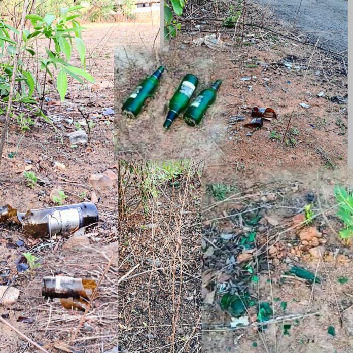 फोंडाघाट | कुमार नाडकर्णी : गेले कित्येक महिने येथील हायस्कूलच्या पिछाडीस असलेल्या इरिगेशन कॉलनी रस्ता आणि मैदानावर, संध्याकाळी अक्षरशः दारुड्यांचा खुलेआम हैदोस सुरू आहे. यामध्ये गावगुंडांच्या पुढार्यापासून नवी नवलाईची यूवाई आहारी गेल्याचे चित्र विदारक आहे. त्यातही लोक दारू आणि इतर साहित्यांची विल्हेवाट, काचा फोडून इतरत्र मैदान-रस्त्यावर फेकून जातात. ही बाब आरोग्याच्या दृष्टीने आणि समाजाच्या किंबहुना सर्वांच्याच दृष्टीने चिंताजनक आहे.