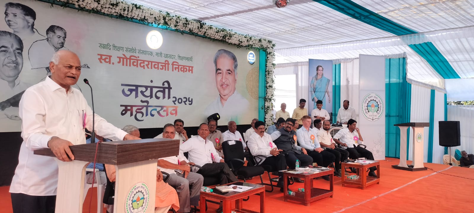 याप्रसंगी विचारमंचावर नेत्ररोग तज्ञ तात्याराव लहाने,उद्योजक मंदार भारदे, ऑलिव्हर मर्चंड, संस्थेचे कार्याध्यक्ष व आमदार शेखर निकम, अध्यक्ष बाबासाहेब भुवड, डी वाय एस पी राजेंद्र राजमाने, पोलीस उपनिरीक्षक जयंत गायकवाड, सचिव महेश महाडिक, विश्वस्त शांताराम खानविलकर, मानसिंगराव महाडिक, चंद्रकांत सुर्वे,मारुतराव घाग,संस्थेचे सर्व पदाधिकारी,उद्योजक प्रशांत निकम, माजी प्राचार्य व जीवन कला गौरव पुरस्कार प्राप्त प्रकाश राजेशिर्के, उदोजक प्रदीप निकम, माजी सभापती पूजाताई निकम, युगंधरा राजेशिर्के, अंजलीताई चोरगे, डॉ. निखिल चोरगे,निकम कुटुंबातील सर्व सदस्य, सावर्डे गावचे सरपंच, उपसरपंच व सदस्य, राष्ट्रवादी काँग्रेस सरचिटणीस जयद्रथ खताते,तालुकाध्यक्ष अबुशेठ ठसाळे, दशरथ दाभोळकर,राकेश चाळके, जिल्हा परिषद सदस्य दिशा दाभोळकर, पंचक्रोशीतील राजकीय,क्रीडा, सांस्कृतिक शैक्षणिक, सहकार, क्षेत्रातील मान्यवर, उद्योजक,पंचक्रोशीतील कार्यकर्ते,पालक,ग्रामस्थ व विद्यार्थी बहुसंख्येने उपस्थित होते. उपस्थित मान्यवरांच्या शुभहस्ते स्व. गोविंदरावजी निकम साहेब यांच्या प्रतिमेचे पूजन करण्यात आले.सुरुवातीला उपस्थित मान्यवरांचे आमदार शेखर निकम यांनी स्वागत केले.