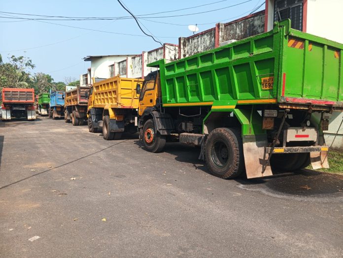 चिपी-परुळे विमानतळ परिसरात चिपी वेंगुर्ले रस्ता येथे अनधिकृत गौण खनिज वाळू वाहतूक करणारे आठ डंपर वेंगुर्ले तहसीलदार ओंकार ओतारी यांच्या मार्गदर्शनाखाली महसूल विभागाच्या ग्राममहसूल अधिकारी परुळे राहुल गवते, ग्राम महसूल अधिकारी रावदस रजनीकांत नायकोडे, ग्राम महसूल अधिकारी कोचरा सायली आंदुर्लेकर, ग्राम महसूल सेवक (कोतवाल) परुळे रुक्मानंद वरक या पथकाने पकडून दंडात्मक कारवाईसाठी तहसीलदार वेंगुर्ले कार्यालय येथे आणले आहेत. प्रांत अधिकाऱ्यांच्या आदेशानुसार तहसीलदार सोमवारी दंडात्मक कारवाई करणार आहेत.
