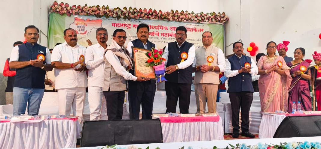 दोडामार्ग l प्रतिनिधी :महाराष्ट्र राज्य माध्यमिक शाळा शिक्षकेत्तर संघटनांचे महामंडळ यांचे ५२ वे राज्यस्तरीय अधिवेशन व चर्चासत्र चिमूर (जि. चंद्रपूर) येथे संपन्न झाले. यामध्ये श्री शांतादुर्गा माध्यमिक विद्यालय पिकुळे प्रशालेचे लिपिक तथा दै. प्रहारचे दोडामार्ग तालुका प्रतिनिधी सुहास देसाई यांना राज्यस्तरीय आदर्श पत्रकार पुरस्कार देऊन गौरविण्यात आले.