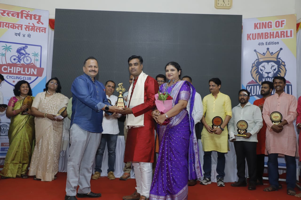 चिपळूण (प्रतिनिधी) : चिपळूण येथे नुकतेच रत्नसिंधू सायकल संमेलन पार पडले. जिल्हा संमेलनाचे हे सलग चौथे वर्ष होते. या संमेलनात मागील वर्षभरात जिल्ह्यातील सर्वात जास्त अंतर सायकलिंग करणाऱ्या मेल रायडर प्रशांत दाभोळकर यांना सायकल सम्राट, तर फीमेल रायडर डॉ. मनिषा वाघमारे यांना सायकल सम्राज्ञी या पुरस्काराने गौरविण्यात आले.