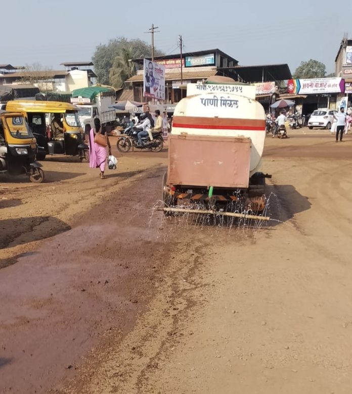 या पार्श्वभूमीवर लोकांची धुळीच्या त्रासाने होणारी गैरसोय लक्षात घेऊन आज मंगळवारी प्रथम प्रसन्न शेट्ये या तरुणाने स्वखर्चाने संपूर्ण बस स्थानकात पाणी मारल्याने धुळीचा त्रास कमी झाला