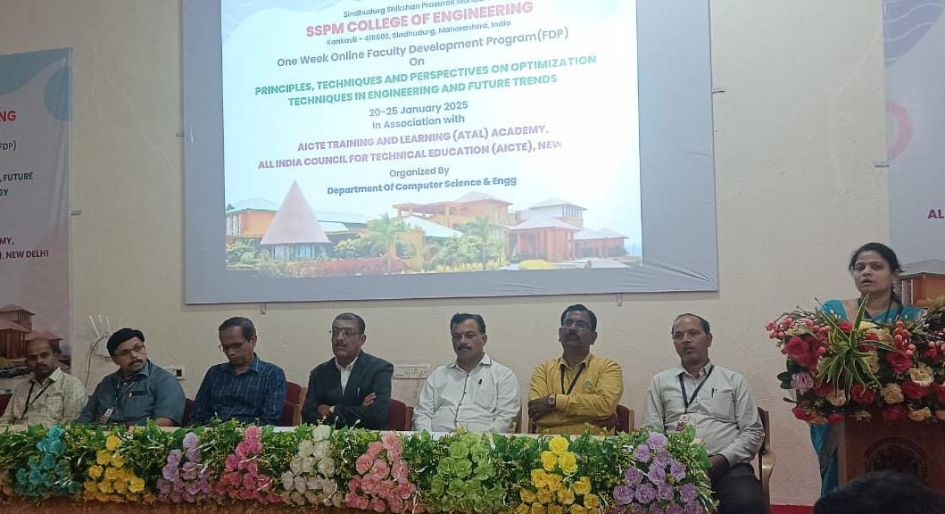 कणकवली (प्रतिनिधी)सिंधुदुर्ग शिक्षण प्रसारक मंडळ कॉलेज ऑफ इंजिनियरिंग, कणकवली येथे अखिल भारतीय तांत्रिक शिक्षण परिषद (ए.आय. सी.टी.ई.), ट्रेनिंग अँड लर्निंग (अटल) अॅकडेमी, नवी दिल्ली यांच्या संयुक्त विद्यमाने, कंप्युटर सायन्स आणि इंजिनिरिंग (AIML) विभागाद्वारे “Principles, techniques and perspective on optimization techniques in engineering and future trends” या साप्ताहिक प्रशिक्षण कार्यशाळेचे उद्घाटन शासकीय अभियांत्रिकी महाविद्यालय, जळगाव चे प्राध्यापक डॉ. अशोक जी मतानी यांचे हस्ते संपन्न झाले.