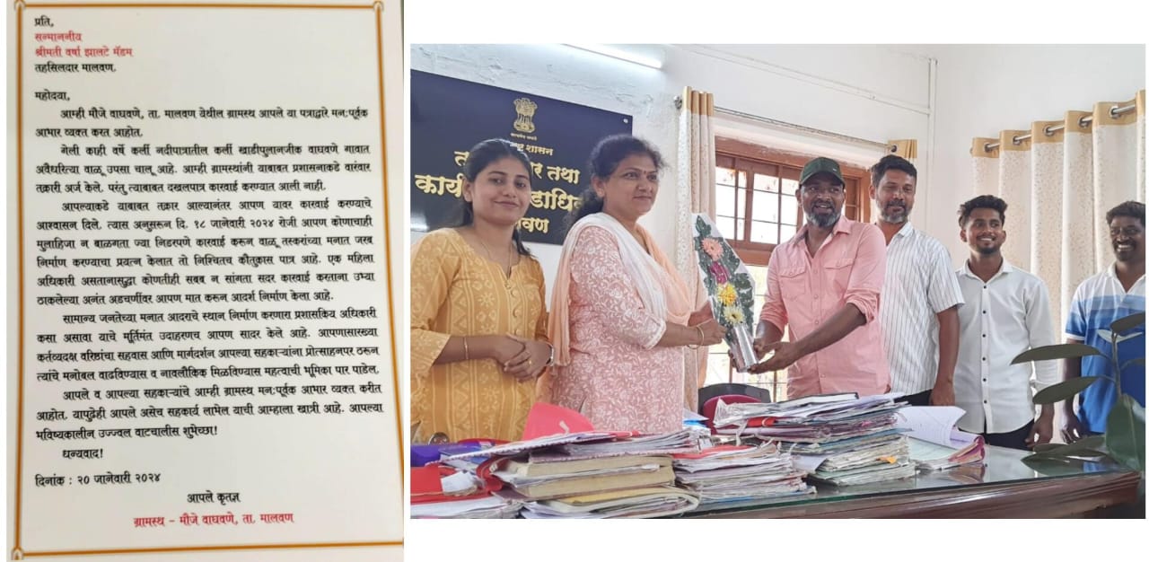 मालवण तहसीलदार वर्षा झालटे यांचे वाघवणे ग्रामस्थांनी आभारपत्र देत केले कौतुक