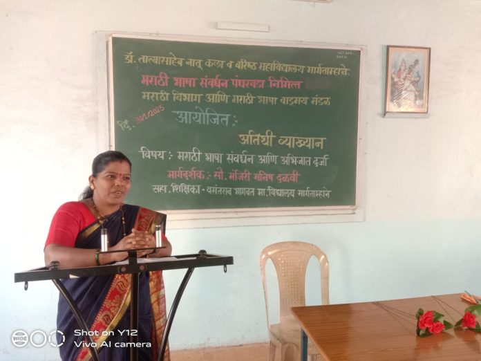 तर त्या ऐवजी आपण मातृभाषेला प्राधान्य दिले तर अधिक गोडवा त्या भाषेला येतो” असे मत त्यांनी आपल्या व्याख्यानात मांडले. या कार्यक्रमाला महाविद्यालयाचे प्राचार्य डॉ. बाळासाहेब यादव यांनी शुभेच्छा दिल्या. सूत्र संचालन प्रा. विक्रांत टेरवकर तर आभारप्रदर्शन प्रा. प्रियांका माने यांनी केले.
