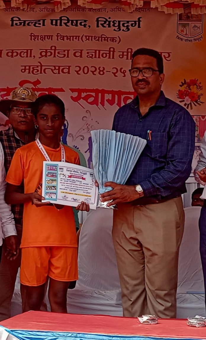 आचरा–अर्जुन बापर्डेकर :जिल्हास्तरीय बाल कला क्रीडा व ज्ञानी मी होणार महोत्सव नुकताच ओरस येतील डॉन बॉस्को मैदानावर संपन्न झाला. आचरा येथील हुतात्मा दत्ताराम भाऊ कोंयंडे शाळा पिरावाडी शाळेने रनिंग, उंच उडी, रिलेव खो-खो या क्रीडा प्रकारात पंधरा मुलांनी सहभाग दर्शवला होता. या सर्व मुलांची तालुकास्तरावरून जिल्हास्तरावर निवड झाली होती यामध्ये ऐश्वर्या महेश तोडणकर हिने उंच उडी या प्रकारात जिल्हास्तरावर प्रथम क्रमांक मिळवून यश प्राप्त केले आहे या यशाबद्दल शाळा व्यवस्थापन समिती अध्यक्ष नित्यानंद तळवळकरउपाध्यक्ष पूर्वा तारी,मुख्याध्यापक सुभाष नाटेकर,माजी सरपंच डॉ प्रमोद कोळंबकर यांनी अभिनंदन केले आहे.