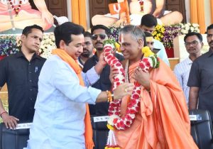 रत्नागिरी | प्रतिनिधी : श्री क्षेत्र नाणीजधाम येथील संत शिरोमणी गजानन महाराजांच्या प्रकट दिन सोहळ्याला उपस्थितीत राहिलो ते एक हिंदू म्हणूनच. हीच माझी सर्वात पहिली ओळख आहे. पदे येतात आणि जातात पण या संतपीठावरून जगतगुरू नरेंद्रचार्यजी महाराज यांच्याकडून मिळणारी उर्जा आयुष्यात नेहमीच प्रेरणादायी ठरली आहे असे प्रतिपादन राज्याचे मत्स्यव्यवसाय व बंदरे मंत्री नितेश राणे यांनी केले. तर आपल्या जमिनीचे संरक्षण करण्यासाठी सनातन बोर्ड स्थापन करण्यासाठी जगतगुरूनी पुढाकार घ्यावा असे आवाहन सुद्धा त्यांनी केले.