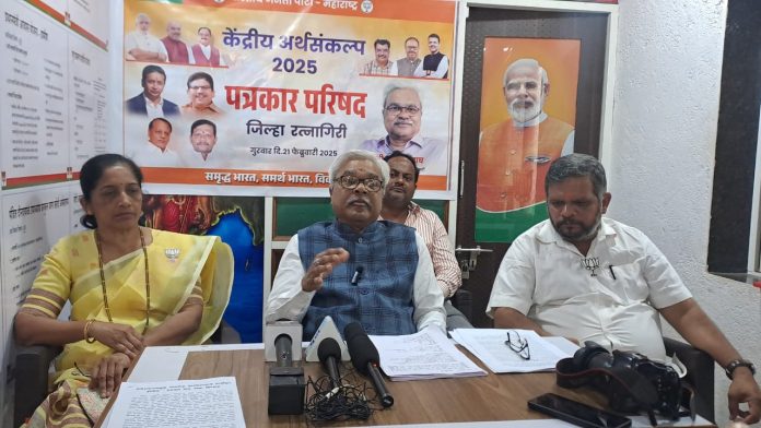 दापोली l प्रतिनिधी: केंद्रीय अर्थमंत्री निर्मला सीतारामन यांनी सादर केलेला अर्थसंकल्प हा सर्वसमावेशक असून विकसित भारताच्या दिशेने जाणारा मार्ग अधिक प्रशस्त करणारा आहे असे मत महाराष्ट्र भाजपाचे राज्य प्रवक्ते अवधूत वाघ यांनी व्यक्त केले. दापोली येथे घेतलेल्या पत्रकार परिषदेत ते बोलत होते. त्यावेळी श्री. केदार साठे, जिल्हाध्यक्ष, रत्नागिरी उत्तर, सौ. स्मिताताई जावकर, प्रदेश निमंत्रित सदस्या, श्री. संजय सावंत, तालुका अध्यक्ष, दापोली, सौ. जयाताई साळवी, नगरसेविका व जिल्हा उपाध्यक्षा, रत्नागिरी उत्तर, श्री. संदीप केळकर, शहर अध्यक्ष, दापोली शहर, श्री. धिरज पटेल, सोशल मिडिया तालुका संयोजक, दापोली हे उपस्थित होते.