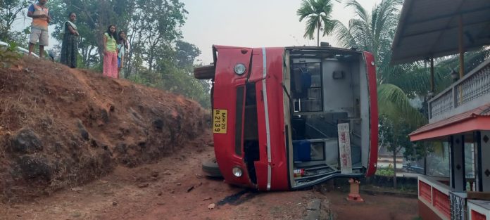 खवणे येथे रात्री वस्तीला असलेली एसटी बस गाडी आज सकाळी सव्वा सहाच्या दरम्यान कुडाळच्या दिशेने बाहेर पडताना चालकाला रस्त्यावरील चढावाचा अंदाज न आल्याने गाडी बाजूला घळणीमध्ये पलटी होऊन अपघात झाला. एसटी बसते नुकसान झाले असून सुदैवाने गाडीतील चालक वाहक बचावले आहेत.