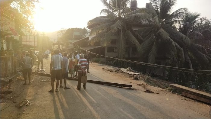 यावेळी शंभू विर्नोडकर, सुधाकर राणे, हर्ष सातोसकर, मीरा सावंत, तुषार बांदेकर, काका तेंडोलकर, सिताराम गावडे यांनी संबंधित ठेकेदाराला धारेवर धरले. चुकीच्या पद्धतीने चालू असलेले काम होऊ देणार नाही असा इशारा दिला. याबाबतची सखोल चौकशी प्रांताधिकारी हेमंत निकम यांनी करावी अशी मागणी करण्यात आली आहे.