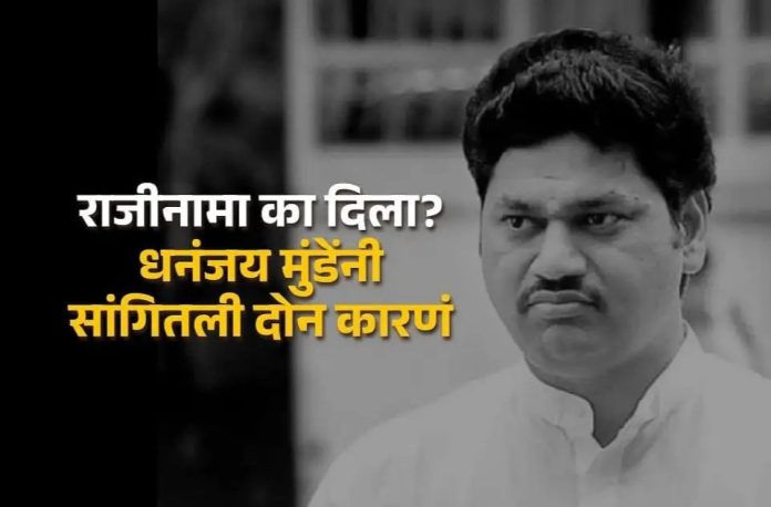 माझ्या सदसद् विवेक बुद्धीला स्मरून आणि मागील काही दिवसांपासून माझी प्रकृती ठीक नसल्याने पुढील काही दिवस उपचार घेण्याचा सल्ला डॉक्टरांनी दिला आहे .त्यामुळे वैद्यकीय कारणास्तवसुद्धा मी मंत्रिमंडळातून माझ्या मंत्रिपदाचा राजीनामा मुख्यमंत्री महोदयांकडे दिला आहे असं धनंजय मुंडे म्हणाले.