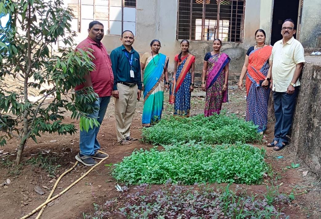 यामध्ये हिरवा, लाल माठ, कोथिंबीर,मुळा,मिरची,पालक,आदी भाज्यांचे वाफे तयार करण्यात आले आहेत.दररोज वेगेवगळी भाजी नियमित पोषण आहाराच्या आमटी मध्ये घातली जात आहे.पूर्णपणे सेंद्रिय पद्धतीने पिकवलेल्या भाजीचा वापर विक्री आधी दैनंदिन पोषण आहारात केला जात असल्याने याचे सर्वत्र कौतुक होत आहे.