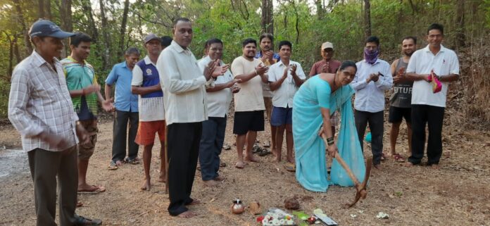 मसुरे | झुंजार पेडणेकर : गोळवण चव्हाणवाडी येथील स्मशानभूमी शेड बांधणे कामाचा शुभारंभ ग्रामपंचायत सदस्या श्रीमती प्राजक्ता चिरमुले यांच्या हस्ते नुकताच करण्यात आला. सदर कामासाठी जिल्हा वार्षिक योजने मधून ५ लाख रुपये मंजूर असून त्यासाठी भारतीय जनता पक्षाचे मालवण तालुका अध्यक्ष श्री. धोंडी चिंदरकर, जिल्हा बँकेचे संचालक श्री. बाबा परब, सचिव श्री.महेश मांजरेकर, जिल्हा उपाध्यक्ष ,श्री.अशोक सावंत,गोळवन सरपंच श्री. सुभाष लाड यांनी प्रयत्न केले.या कामी माजी खासदार श्री. निलेश राणे, पालक मंत्री, श्री. रवींद्र चव्हाण यांचे खास सहकार्य लाभले आहे. या वेळी गावचे सरपंच श्री. सुभाष लाड, उप सरपंच श्री. गावडे सर, ग्रामपंचायत सदस्या श्रीम. प्राजक्ता चिरमुले, श्री. भाई चिरमुले, श्री. संतोष चव्हाण, भगवान चव्हाण, बाळा चव्हाण, भाई नाईक, बाबा परब व इतर ग्रामस्थ उपस्थित होते. या वेळी श्री. सुभाष लाड यांनी निधी उपलब्धते साठी भाजप पदाधिकारी यांचे आभार मानले.