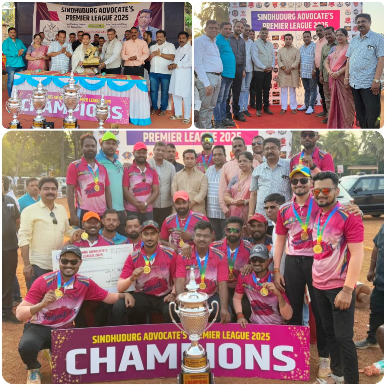 सिंधुदुर्ग जिल्हा बार असोसिएशन आणि माजी अध्यक्ष तथा ॲड. संग्राम देसाई विद्यमान सदस्य बार कौन्सिल ऑफ महाराष्ट्र आणि गोवा यांचे संयुक्त विद्यमाने आयोजित ‘सिंधुदुर्ग ॲडव्होकेट प्रीमियर लीग’ या वकील सहभागतील लेदर बॉल क्रिकेट स्पर्धा मालवण टोपीवाला बोर्डिंग मैदान येथे संपन्न झाल्या. स्पर्धेचा पारितोषिक वितरण सोहळा मंत्री नितेश राणे यांच्या हस्ते संपन्न झाला. स्पर्धेत ॲड. श्रीकांत पन्हाळे 11 सातारा संघ विजेता तर आरजे वॉरियर कोल्हापूर संघ उपविजेता ठरला. यांसह सिंधुदुर्ग व सांगली संघ तृतीय व चतुर्थ क्रमांकाचा मानकरी ठराला. स्पर्धेत सर्वोत्तम कामगिरी म्हणून बेस्ट बॅटर आशिष शिंदे, बेस्ट बॉलर प्रफुल्ल पवार, मॅन ऑफ दि सिरीज निलेश राजे भोसले यांना सन्मानित करण्यात आले.