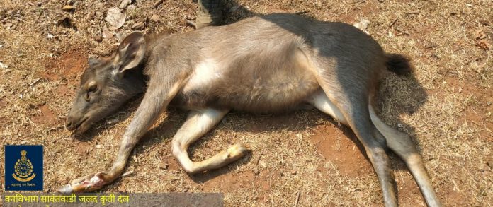 याबाबत अनिल चव्हाण यांनी वनविभागाला माहिती दिल्यानंतर रेक्यू टीमचे कर्मचारी प्रथमेश गावडे, राकेश अमृस्कर , वसंत गावडे यांनी घटनास्थळी भेट देत पंचनामा करून मृत सांबर ताब्यात घेतले. यानंतर वनविभाग कार्यालयाजवळ नेऊन त्याच्या पार्थिवावर अंत्यसंस्कार करण्यात आले.