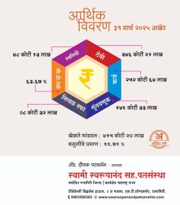 संस्थेच्या नुतन स्ववास्तूचे कामाचा प्रारंभ झाला असून ही ५ मजली स्वमालिकेची वास्तू सुसज्ज पद्धतीत वेगवान काम करत पूर्ण करण्यासाठी उचित यंत्रणा सक्रिय केली आहे. सन २०२४-२५ या आर्थिक वर्षात संस्थेच्या ग्राहक सभासदांनी दिलेल उत्तम सहकार्य, ठेवीदार सभासदांनी ठेवलेल्या ठेवी, कर्जदार सभासदांनी घेतलेल कर्ज व केलेली नियमित परतफेड, कर्मचारी, अधिकारी, पिग्मी एजंट यांनी केलेल उत्तम काम या उत्तम सहकार शृंखलेमुळे संस्थेची उत्तम अर्थकारणाची परंपरा सन २०२४-२५ मध्येही तेजस्वी राहीली त्याबद्दल सर्वाना धन्यवाद देतानाच स्वरुपानंद पतसंस्थेने कमालीचे सातत्य राखत प्रमाणबद्ध आर्थिक व्यवहार शिस्तीने आणि विश्वासार्ह पद्धतीने केल्याने हे यश प्राप्त झाले असे प्रतिपादन अॅड. दीपक पटवर्धन यांनी केले.