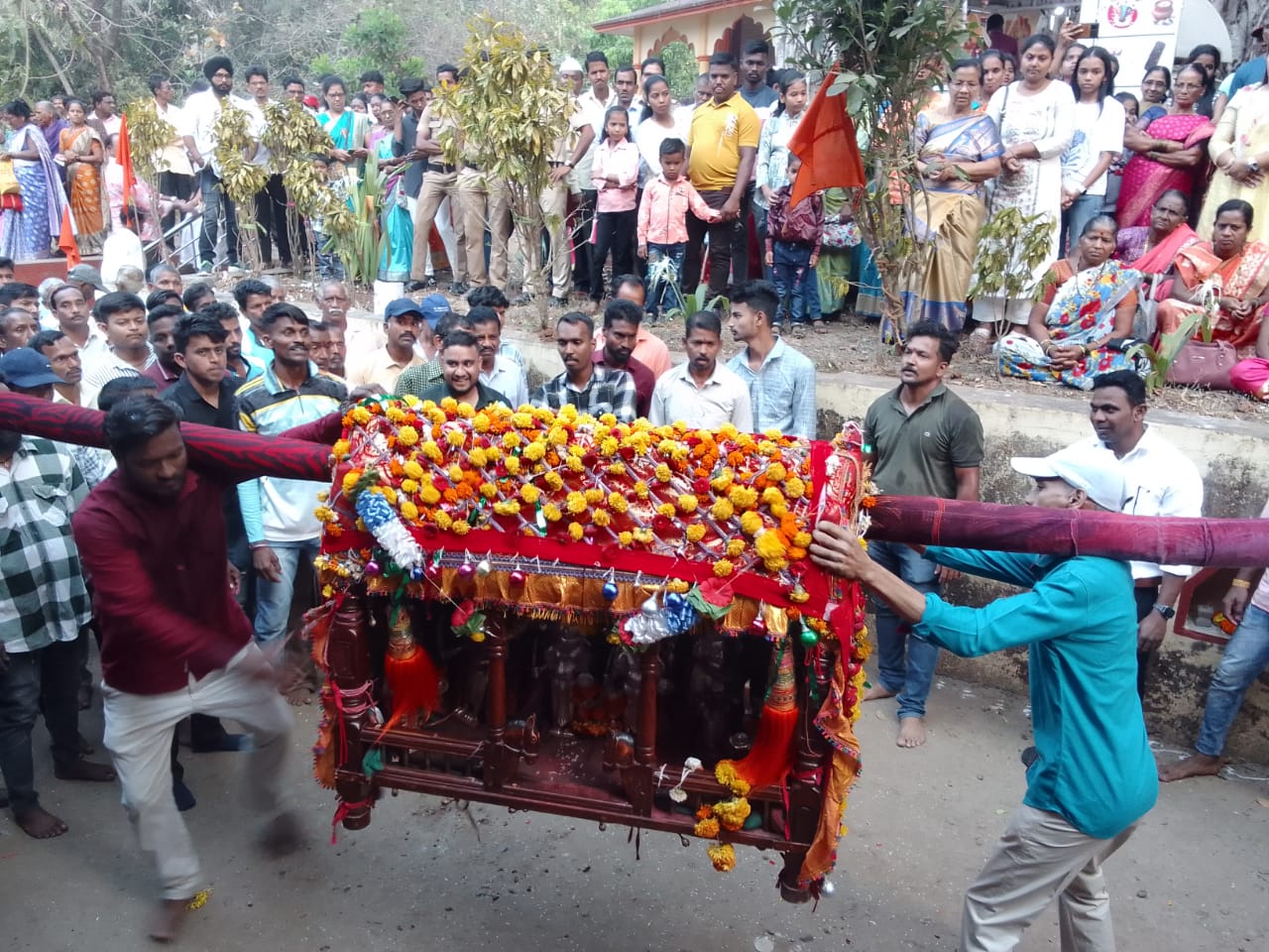 शिमगोत्सवाच्या या शेवटच्या दिवशी ग्रामदेवतेची पालखी नाचवण्याचा सोहळा होतो.ग्रामदेवतेच्या मंदिराभोवती पालखी नाचवत पाच फेऱ्या मारल्या जातात.सनई,ढोल,ताशांच्या गजरात पालखी नाचवण्याचा नेत्रदीपक सोहळा पाहण्यासाठी आजूबाजूच्याच नव्हे तर जिल्हाभरातून भाविक मोठ्या संख्येने उपस्थित असतात.यावेळी भाविकांनी श्री देव मानोबाचे देखील दर्शन घेतले.