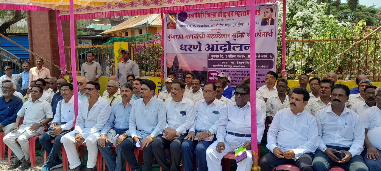 रत्नागिरी : बुद्धगया मुक्ती चळवळीसाठी १९४९ च्या कायद्यात सुधारणा आणि व्यवस्थापन समितीत बौद्धांचा समावेश करण्याच्या प्रमुख मागणीसह विविध मागण्यांसाठी रत्नागिरी जिल्हा बौद्धजन महासंघ, मुंबई यांच्या वतीने आज बुधवारी जिल्हाधिकारी कार्यालयाबाहेर धरणे आंदोलन करण्यात आले.