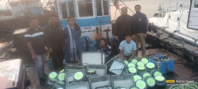 राज्याचे मत्स्यव्यवसाय व बंदरे मंत्री नितेश राणे यांच्या निर्देशानंतर अनधिकृत मासेमारी आणि एलईडी मासेमारीवर मत्स्यव्यवसाय विभागाकडून सातत्याने कारवाई केली जात आहे. त्याचाच एक भाग म्हणून मत्स्यविभागाकडून मिळालेल्या माहितीनुसार गुरुवारी मध्यरात्री म्हणजेच दि. 25/4/2025 रोजी रात्री 00.45 च्या सुमारास बुरोंडी समोर 11.5 सागरी माइल्स मधे मत्स्यव्यवसाय विभागाचे अंमलबजावणी अधिकारी श्रीम. दीप्ती साळवी, सहाय्यक मत्स्यव्यवसाय विकास अधिकारी (परवाना अधिकारी, दाभोळ) हे गस्त घालत होते. यावेळी राज्याच्या जलधी क्षेत्रासाठी परवाना असलेली नझीम अली जांभारकर, (रा. पडवे, ता. गुहागर, जि. रत्नागिरी ) यांची नौका- साबीर, नों. क्र. IND-MH-4-MM-493 द्वारे महाराष्ट्रातील जलधी क्षेत्रात बुरोंडी समोर अनधिकृतरित्या एल.ई.डी. लाईटचा वापर करताना पकडण्यात आली. या नौकेवर नौका तांडेलसह 2 खलाशी होते.