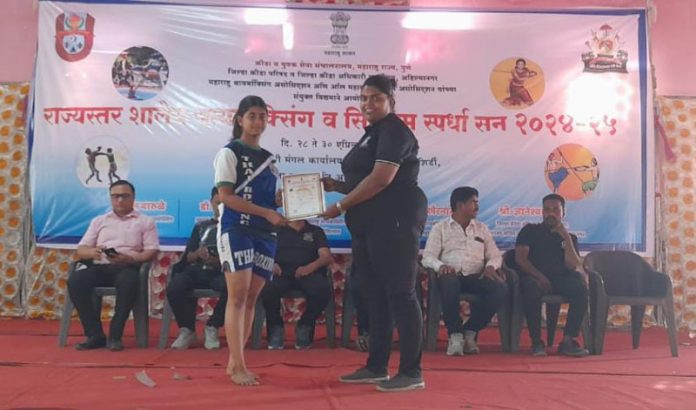 चौके – प्रतिनिधी :- नाशिक अहिल्यानगर येथे नुकत्याच पार पडलेल्या राज्यस्तरीय क्रीडा स्पर्धेत थाय बॉक्सिंग क्रीडा प्रकारात मालवण तालुक्यातील चौके भ.ता.चव्हाण, म. मा.विद्यालय चौके या प्रशालेची विद्यार्थिनी रिद्धी संदीप कांबळी हिने थाय बॉक्सिंग या क्रीडा प्रकारात अंतिम फेरीपर्यंत मजल मारून द्वितीय क्रमांक प्राप्त केला. सांगली,सातारा,कोल्हापूर, रत्नागिरी आणि सिंधुदुर्ग या पाच जिल्ह्यातून खेळाडू सहभागी झाले होते. कुमारी रिद्धी कांबळी हिने यापूर्वी जिल्हास्तरीय स्पर्धा ओरोस येथे जिल्हा क्रीडा संकुल मध्ये पार पडलेल्या स्पर्धेत प्रथम क्रमांक प्राप्त केला त्यानंतर विभागीय स्पर्धा सांगली येथे झाली या स्पर्धेमध्ये, सांगली,सातारा, कोल्हापूर, रत्नागिरी आणि सिंधुदुर्ग या पाच जिल्ह्यातून खेळाडू सहभागी झाले होते या सर्व खेळाडूंमधून कुमारी रिद्धी कांबळी हिने विभागीय स्पर्धेत प्रथम क्रमांक प्राप्त केला होता त्यानंतर दिनांक 29/4/2025 रोजी अहिल्यानगर नाशिक येथे राज्यस्तरीय स्पर्धा घेण्यात आली या स्पर्धेमध्ये संपूर्ण महाराष्ट्रा मधून खेळाडू सहभागी झाले होते, या स्पर्धेत अंतिम सामन्यात पर्यंत धडक मारून संपूर्ण महाराष्ट्रात द्वितीय क्रमांक प्राप्त केला.