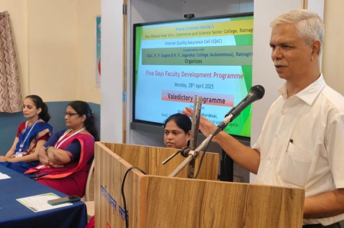 रत्नागिरी : भारत शिक्षण मंडळाच्या देव, घैसास, कीर कला, वाणिज्य आणि विज्ञान वरिष्ठ महाविद्यालयात पाच दिवसीय शिक्षक प्रशिक्षण कार्यशाळेची सांगता नुकतीच झाली.