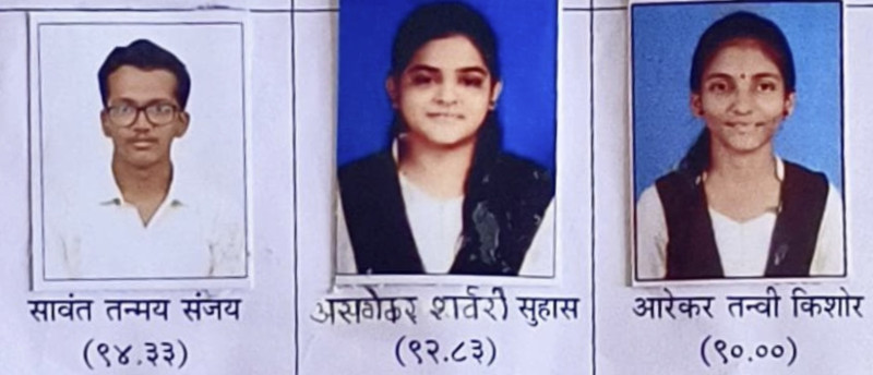 कला : १) श्रेया महेश तावडे (८७:५०%) २) संपदा भरत पालकर (८१:५०%) ३) कश्यपी राजेंद्र माईणकर (७४:५०%) वाणिज्य : १) पार्थ दिपक म्हस्के (८५:६७%) २) वेदांत रवीद्र तळेकर (८०:८३%) ३) सर्वेश सुधीर नादकर (७९%) विज्ञान : १) कृतिका केशव जाधव (७३:१७%) २) सिध्दी जयेंद्र पाळेकर (७१:६७%) ३) रिध्दी जयेंद्र पाळेकर (७१:१७%)