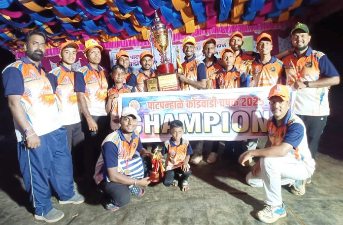 शृंगारतळी (वार्ताहर) गुहागर तालुक्यातील पाटपन्हाळे येथे कोंडवाडी चषकच्या वतीने दरवर्षी प्रमाणे यावर्षीही तळी मैदानात क्रिकेट स्पर्धेचे आयोजन करण्यात आले होते. या २ दिवस चाललेल्या क्रिकेट स्पर्धेत विशाखा स्पार्टन संघाने विजेतेपद तर श्री समर्थ कृपा संघाने उपविजेतेपद पटकावले. विठाई संघ तृतीय क्रमांकाचा संघ ठरला. या तिन्ही संघांना मान्यवरांच्या हस्ते रोख रक्कम व चषक देऊन गौरविण्यात आले.