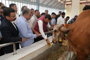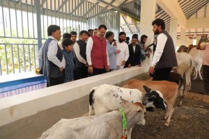कणकवली : गाय म्हणजे प्रगती.गायीला आपण माता मानतो. मागील 3 वर्षे करंजे येथील माळरानावर आम्ही गोवर्धन गोशाळेची मुहूर्त मेढ रोवली.आज गोशाळेत देशातील दीडशे विविध जातीच्या गायी आहेत. कोणती गाय किती लिटर दुध देते.कोणत्या गायीचे तूप चढ्या दराने विकले जाते याचे मार्गदर्शन येथे मिळणार. शेण शेतकऱ्यांकडून 5 रुपये किलो आणि गोमूत्र 8 रुपये लिटर दराने विकत घेणार आहोत.शेणापासून रंग, शेणखत, तसेच विविध उत्पादन घेणार आहोत. जिल्ह्याचे दरडोई असलेले अडीच लाखांचे उत्पन्न वाढावे यासाठी राणे कुटुंबाचा प्रयत्न आहे. जिल्ह्याचा सर्वांगीण विकास व्हावा , जिल्ह्यात आय ए एस, आय पी एस सह प्रशासकीय अधिकारी निर्माण व्हावेत यासाठी आम्ही प्रयत्नशील आहोत.या गोवर्धन गोशाळेच्या माध्यमातून जिल्ह्यातील व्यावसायिकांनी प्रेरणा घेऊन दुग्ध व्यवसायात उतरावे असे आवाहन खासदार नारायण राणे यांनी गोवर्धन गोशाळा उदघाटन प्रसंगी केले.