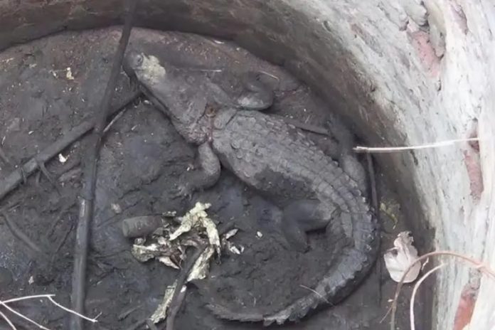 पाहणी दरम्यान, कोरड्या विहिरीत मगर आढळली नाही. आजूबाजूच्या परिसराची तपासणी केली असता, विहिरीपासून दक्षिण दिशेला ५० मीटर अंतरावर लाकडे पेटताना दिसली.