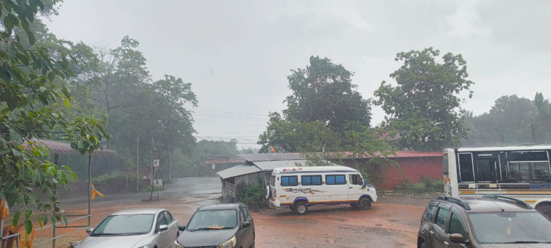 दोडामार्ग l प्रतिनिधी :तालुक्यातील काल काही भागांत मुसळधार पाऊस झाला होता आज सकाळपासून वातावरण तापले होते मात्र दुपारी मुसळधार पावसाने हजेरी लावल्याने बाजारपेठेत चाकरमानी तसेच लग्न सराई साठी खरेदी करण्यासाठी आलेल्या जनतेची मोठी पंचाईत झाली होती अचानक कोसळलेल्या पावसामुळे शेतकरी सह सर्वसामान्य जनतेला सुखद धक्का बसला आहे ठीक ठिकाणी रस्त्यावर पावसामुळे पाणी साचले होते तर काही ठिकाणी रस्त्यात कामे सुरू असल्याने वाहतुकीस पुलाचे बांधकाम सुरू असल्याने गैरसोय झाली होती तसेच गटार भरून वाहत असल्याने रस्त्यावर चिखल साचला आहे याकडे लक्ष देण्याची मागणी जनतेतून होत आहे