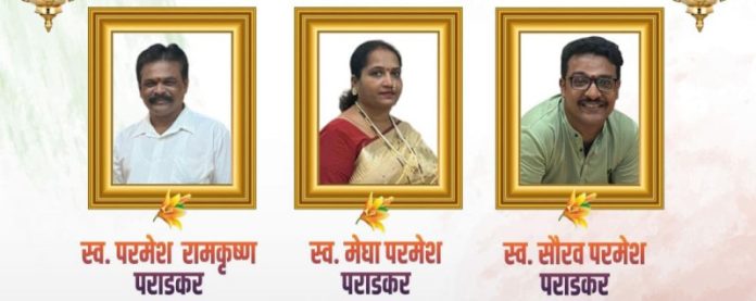 देवरुख येथील मोहन चाळके यांचे रविवारी गावी निधन झालं त्यांच्या अंत्ययात्रेसाठी मोरे व पराडकर कुटुंब निघाल होतं. या अपघातात मृत्यू झालेल्या मेधा पराडकर या मोहन चाळके यांची मानस कन्या होत्या. या भीषण अपघातातील मृत्यूच्या तांडवाने रत्नागिरी जिल्ह्यातील देवरुख व मुंबईतील नालासोपारा परिसरावर शोककाळा पसरली आहे. पराडकर कुटुंबातील या तिघांवरही आज नालासोपारा येथे अंत्यसंस्कार होणार आहेत. पराडकर कुटुंबीयांच्या जाण्याने मित्रपरिवार अनेक नागरिक यांच्याकडून हळहळ व्यक्त केली जात आहे. परमेश पराडकर यांच्या पश्चात आई ,भाऊ ,बहीण असा परिवार आहे.