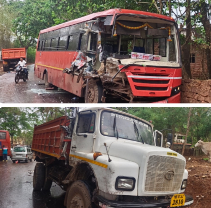मालवण डेपोची एसटी बस (M H -14 BT -3063) मंगळवारी दुपारी कुडाळ वरून मालवणच्या दिशेला येत असताना चौके नारायण वाडी येथे एसटी बस आणि चौके वरून धमापुरच्या दिशेने जाणाऱ्या डंपर(MH-07- AJ -2810) यांच्यामध्ये एसटी चालकाच्या बाजूने जोरदार धडक होऊन अपघात झाला. या अपघातात एसटी बसचा चालक किरकोळ जखमी होऊन सुदैवाने बचावला.बसमधील प्रवाशांनाही किरकोळ दुखापती झाल्या.. मात्र झालेल्या अपघातात एसटी बसचे मोठे नुकसान झाले. चालक वाहक आणि किरकोळ जखमी प्रवाशांना प्राथमिक उपचारासाठी दवाखान्यात नेण्यात आले. बसचालक आणि वाहक यांनी अपघाताची खबर मालवण एसटी आगारात दिली असून एसटी प्रशासनाकडून पुढील कार्यवाही करण्याची प्रक्रिया चालू आहे.