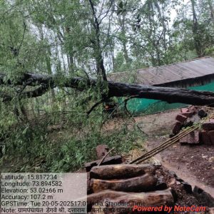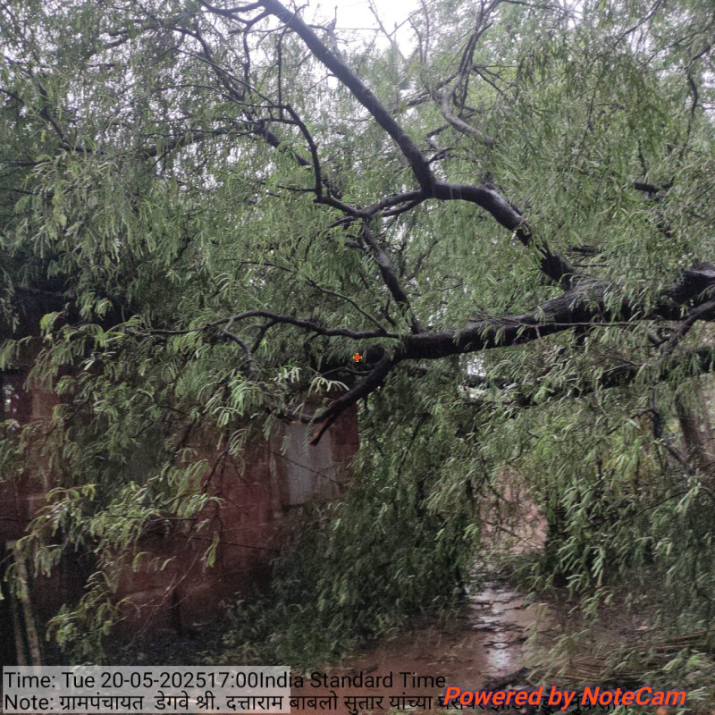 नुकसानग्रस्तांमध्ये डेगवे जांभळवाडी येथील दत्ताराम बाबलो सुतार यांच्या घरावर झाड कोसळल्याने घराच्या छताला आणि भिंतींना मोठा धक्का बसला आहे.