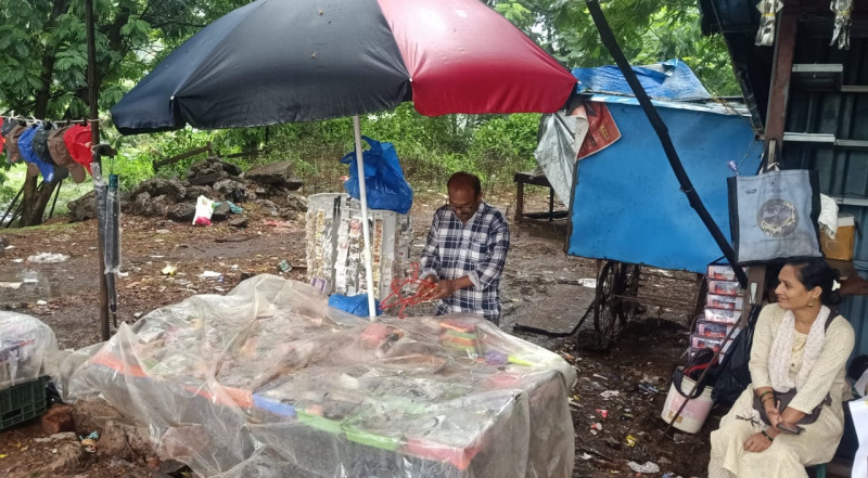 पोटासाठी पावसात सुद्धा रस्त्यावर विकत आहेत माल