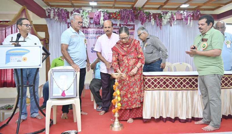 रत्नागिरी : रत्नागिरी जिल्हा ब्रिज असोसिएशनच्या सुवर्णमहोत्सवी वर्षानिमित्त व असोसिएशनचे दिवंगत अध्यक्ष प्राचार्य डॉ. सुभाष देव यांच्या स्मृतीप्रीत्यर्थ आयोजित राज्यस्तरीय ब्रिज स्पर्धा आजपासून येथे सुरू झाली. स्पर्धेचे उद्घाटन श्रीमती सुखदा सुभाष देव यांच्या हस्ते दीपप्रज्वलनाने झाले.