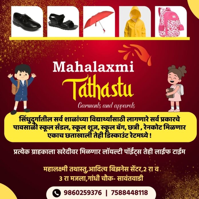 💁♂️सिंधुदुर्गातील सर्व शाळांच्या विद्यार्थ्यांसाठी लागणारे सर्व प्रकारचे पावसाळी स्कूल सॅंडल👡, स्कूल शूज👟, स्कूल बॅग🎒, छत्री ⛱️,रेनकोट👕 मिळणार एकाच छताखाली तेही डिस्काउंट रेटमध्ये !_