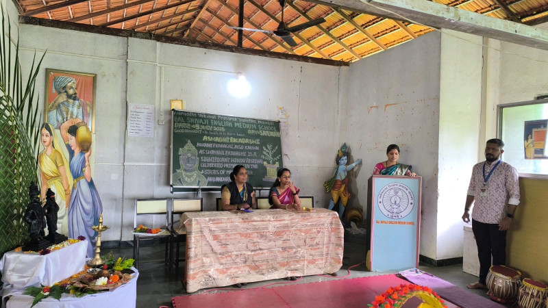 कणकवली : येथील बाल शिवाजी इंग्लिश मिडियम स्कूलमध्ये शनिवारी आषाढी एकादशीचा उत्सव मोठ्या उत्साहात साजरा करण्यात आला. या दिवशी विद्यार्थ्यांनी पारंपरिक वेशभूषा केली होती. मुलांनी वारकरी संप्रदायातील पोशाखात सहभागी होत वारीचे वातावरण निर्माण केले. शाळेत सुंदर पालखी सजवण्यात आली होती. विद्यार्थ्यांनी टाळ, मृदुंग व अभंगाच्या गजरात पालखीची मिरवणूक काढली. “ज्ञानोबा माऊली तुकाराम” चा जयघोष करत सर्व परिसर भक्तिमय झाला. या कार्यक्रमात ‘वारीचे महत्त्व’, ‘एकादशीचे धार्मिक व सांस्कृतिक मूल्य’ यावर शिक्षकांनी माहिती दिली.