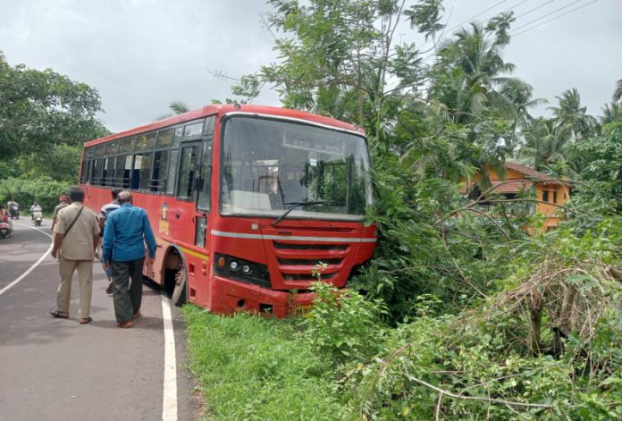 समोरून आलेल्या गाडीला साईड देताना कुडाळ वेंगुर्ला मार्गावरिल मठ येथील वळणावर एसटी बस रस्ता सोडून बाजूला घसरली. सुदैवाने बस चालकाने वेळीच बस थांबविल्याने मोठा अनर्थ टळला. बसमधील सर्वजण सुखरूप आहेत.